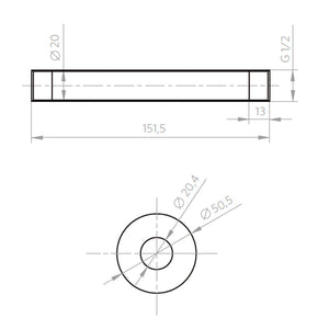 Brazo de ducha estándar que permite ser combinado con cualquiera denuestros platos de ducha Stretto.
