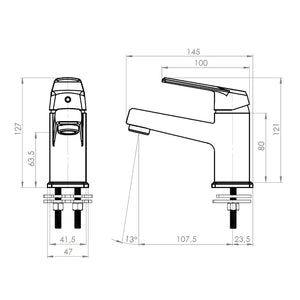 Manilla con giro en 90° que permite mezclar la temperatura del agua.