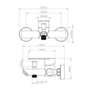 Manilla con giro en 90° que permite mezclar la temperatura del agua.