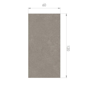 TIPOLOGÍA Porcelanato Look Cementicio Rectificado SERIE Element TERMINACIÓN Mate GRÁFICAS 6 caras FORMATO 60 x 120 cm ESPESOR 10 mm USO Piso y Muro ABSORCIÓN DE AGUA <0,5 % TRÁFICO PEI 4 Residencial Alto y Comercial Moderado RESISTENCIA AL DESLIZAMIENTO R9 UNIDADES POR CAJA 2 Palmetas M2 POR CAJA 1,44 m2 PESO POR CAJA 31 kg