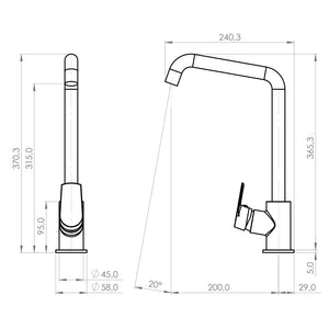 Manilla con giro en 90° que permite mezclar la temperatura del agua.