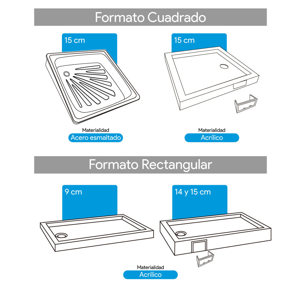 Antes de comprar, confirma que el receptáculo y la mampara sean compatibles en medidas y tipo de instalación (a muro, angular, corredera, etc.). Esto evita fugas y asegura un cierre perfecto.