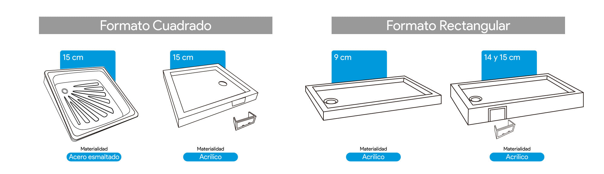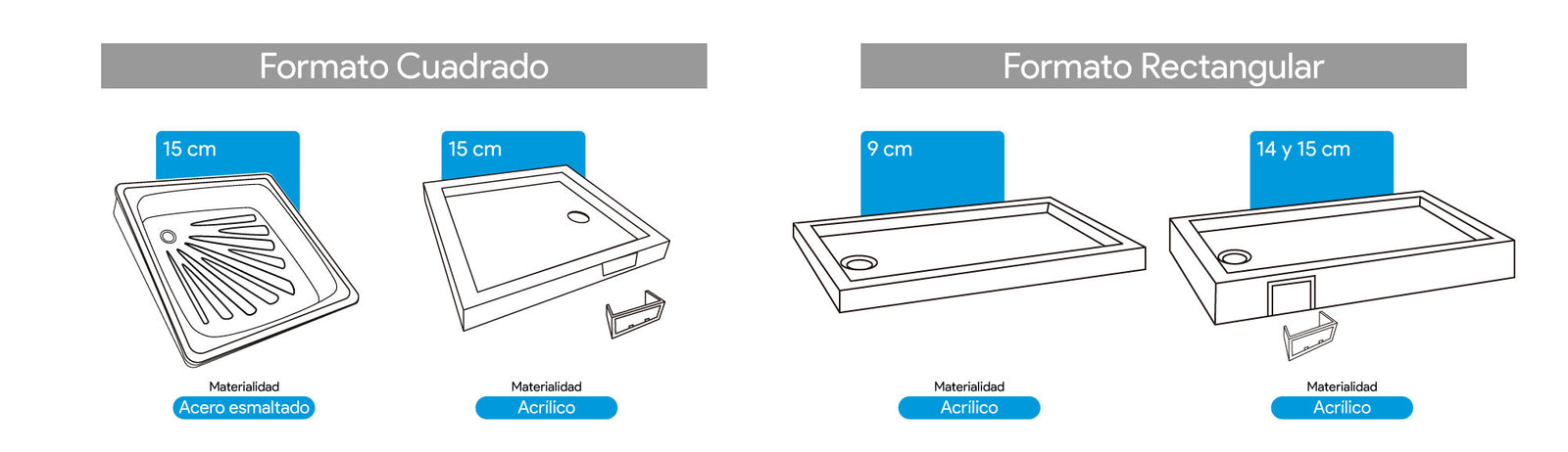 El material determina la resistencia, mantenimiento y estética del receptáculo: