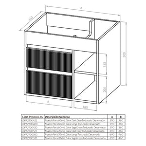 Mueble de baño suspendido con dos cajones y dos repisas.